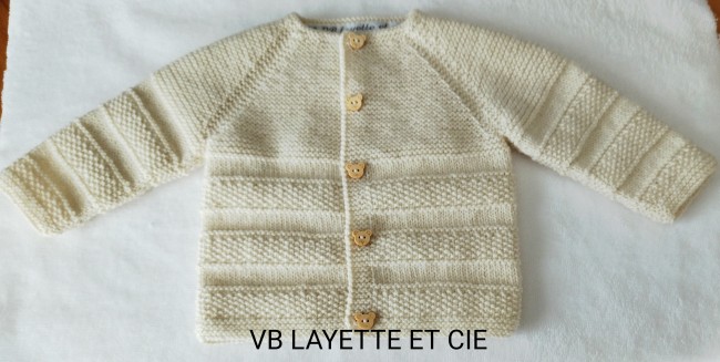 Brassière croisée tricotée main en laine layette mérinos française Fonty BB mérinos de couleur blanche,écru ou jaune paille.